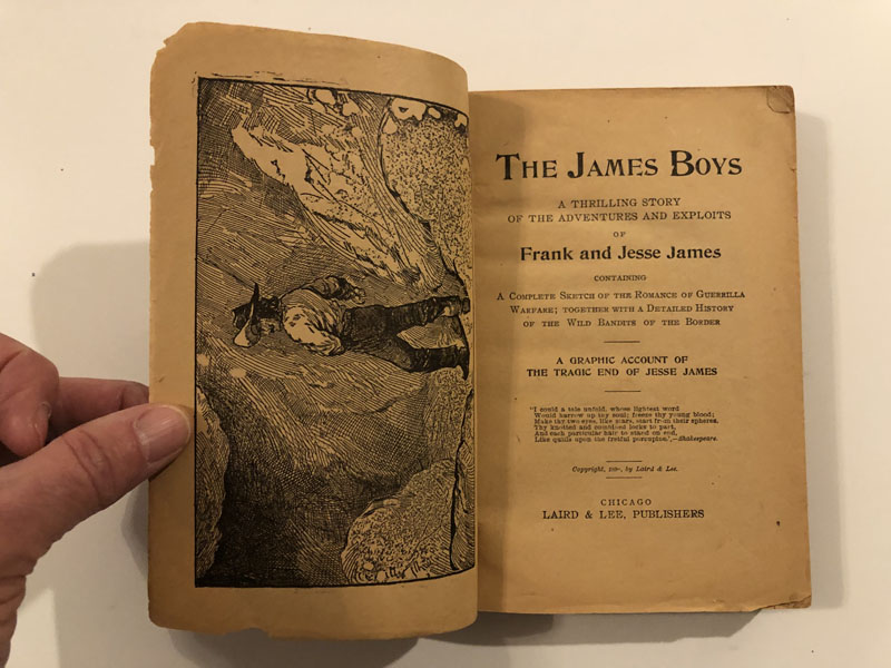 First Edition. Pictorial Wrappers. 363pp, +13pp. Advertisements. A contemporary account of the crimes and experiences of the James Boys. Includes the killing of Jesse by Bob Ford. Considerable soiling and wear to the fragile original wrappers. Internally clean and tight. Good-Very good.
