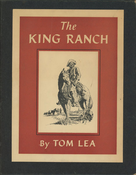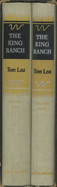 First edition. 2 Volumes. Cloth, 1-467pp. + 468-838pp. Maps and illustrations by Tom Lea. Facsimiles. 7 maps, including 2-page, color map in front of Volume Two. Appendices, notes and sources, index. "Privately printed history of the largest ranch in Texas. Perhaps the most exhaustive ranch history ever written, and a tremendous account of the cattle industry in south Texas."---Bill Reese. A fine set in the original, pictorial slipcase with light wear to the fore-edges. A nice set of this classic work.