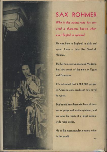 First edition. Precedes the U. K. edition which was published in 1933. Fine, bright, tight copy in a spectacular price-clipped dust jacket with minor wear to the spine ends and a few minor repairs on the verso with cellophane tape. Basis for the 1932 movie of the same name that starred Boris Karloff as Dr. Fu Manchu with Lewis Stone, Karen Morley, Charles Starrett, Myrna Loy, Jean Hersholt, and a host of others. A sharp copy of an early Crime Club title.