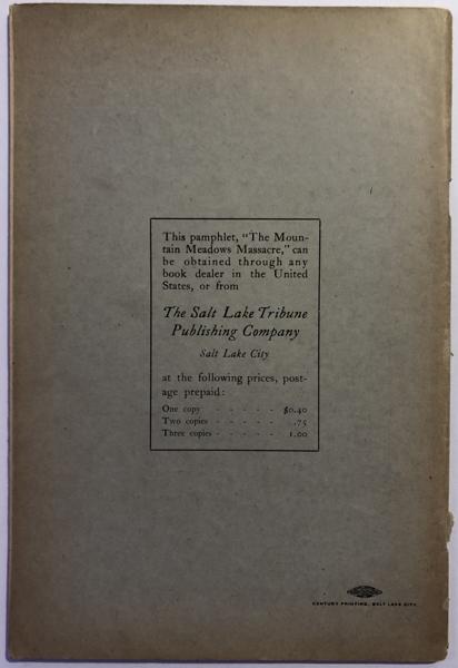 Second edition. 8vo. Pictorial wrappers, 59 pp., introduction, illustrated, plates, portraits. The second edition is considered to be the "best edition," as it corrects statements made in the first edition published earlier in the same year, and provides the complete details of John Doyle Lee's second trial. The first trial had seven Mormons and five Gentiles on the jury, and Lee was acquitted of any wrong doing by a verdict of seven to five. There was such a hue and cry at the results of this verdict by citizens that the leaders of the Mormon community realized that justice must be served and Lee was tried for the second time. The results of that trial and John Lee's execution are fully covered in this booklet. Wear to corners and spine of wrappers. Wrappers are loosely held by one of two binding staples. Light soiling across the top edge of front wrapper. Very good.