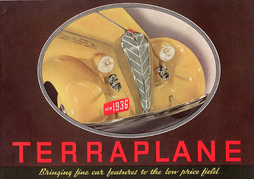 First edition. 28 x 19.5 cm [7 1/4" x 11"], original color, oblong, pictorial wrappers, n. p. [20 pp.], text illustrated throughout with exterior and interior views from black-and-white photographs, red highlights, printed on coated white stock. Bound in color-pictorial wrappers with a bold, front-end view of a 1936 Terraplane on the front cover. Specification details on the rear cover. [WorldCat finds holdings of this title at the Library of Michigan and Harvard Business School.]. Fine, bright copy.