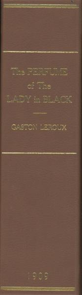 First U. S. edition. First published in French in 1907 as Le Parfum de la Dame en Noir. A sequel to Leroux's 1908 novel The Mystery of the Yellow Room, featuring locked-room elements. Basis for the 1931 French film directed by Marcel L'Herbier, and the 1974 giallo-horror film directed by Francesco Barilli. Former owner's neat bookplate on front pastedown sheet and a tiny erasure hole on half title page, else a fine, bright copy in the elusive dust jacket reinforced at a few points on the verso, with light chips and nicks to the spine ends, corners and extremities, and a small loss towards the center of the rear panel, affecting two words. Considered to be one of two masterpieces written by the author, (the other being THE MYSTERY OF THE YELLOW ROOM), this story finds the reporter-detective Joseph Rouletabille, his confidant, Sainclair, who also narrates the story, Mathilde Strangerson (the LADY IN BLACK), Robert Darzac, and the notorious criminal Ballmeyer, (alias Jean Roussel and Frederic Larsan) dealing with the attempted murder of Mathilde Strangerson. The identity of the criminal is hidden from the rest of the characters until uncovered by Rouletabille along with the mystery of how the criminal entered a hermetically sealed room to make murderous attempts and escape thereafter. Adey 1202 says, "The appearance of a body within locked quarters with all persons within the area accounted for." An attractive presentation of a choice item, especially in the rare dust jacket. Housed in a leather clamshell case with titles stamped in gilt on the spine. A Haycraft/Queen Cornerstone title.