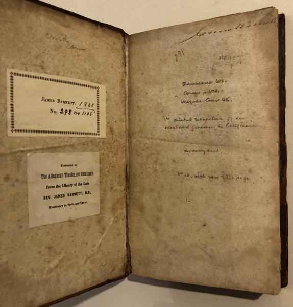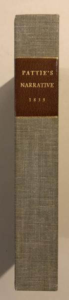Second Edition. Full Tree Calf with gilt imprint on spine. xi, 300pp. Editor's Preface. Introduction. 5 Plates. "The Pattie account is one of the classics of Western Americana. The author and his father were engaged in the fur trade in the Southwest in the 1820s. In 1828 they crossed overland to California, only the second American group to make the trip by a southern route (the first was Jedediah Smith in 1826), and the first to publish an account of their journey. The party had difficult and dangerous experiences in New Mexico, Arizona, and California, where they were tossed in jail by Mexican authorities and the elder Pattie died. His son was released after aiding in vaccinating people during a small pox epidemic. A major work of Californiana and Western Americana, containing one of the first published accounts of the fur trade and of overland travel. This is the second edition of Pattie's narrative, differing from the 1831 edition only in the reprinted titlepage. The sheets in each edition are from the same printing. The editor and virtual author, Cincinnati literary lion Timothy Flint, achieved such a poor sale of the original edition that he canceled the titlepage and reissued the work with the 1833 date to make it seem current. Thus, while the 1831 edition is one of the greatest rarities of Western Americana, it is really the same printing as the 1833 excepting the title, and it is the 1833 issue which saw general circulation."--Bill Reese, The Best Of The West 61. The original full calf binding has been professionally rebacked in matching calf, retaining a small portion of the original spine with "PATTIE'S NARRATIVE" in gilt. Upper 2" of front panel and upper 1" rear panel shows age-cracking to leather. Bookplate of previous owner, James Barnett, on front pastedown. Additional, smalll bookplate states "Presented to The Allegheny Theological Seminary From the Library of the Late Rev. James Barnett, D.D., Missionary in Syria and Egypt." Some tanning and light scattered foxing to the text block. A clean, tight very good copy of this rare and important work. Protected in clamshell box with title and year of publication on gilt on leather label on spine.