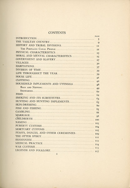 First edition. 4to. Anthropological Publications, Vol. IV, No. 1, 1911. Blue sturdy wrappers, titles printed in black on the front cover, errata laid-in, introduction, illustrated, 120 pp. plus map and 19 full -page plates with two of them in color. An early study of the Tahltan Indian tribe that inhabited British Columbia and Alaska. This work provides an in-depth look at the culture, traditions and daily life. The plates are illustrations from the George G. Heye collection. Covers lightly used, internally tight and clean, else a very good copy.