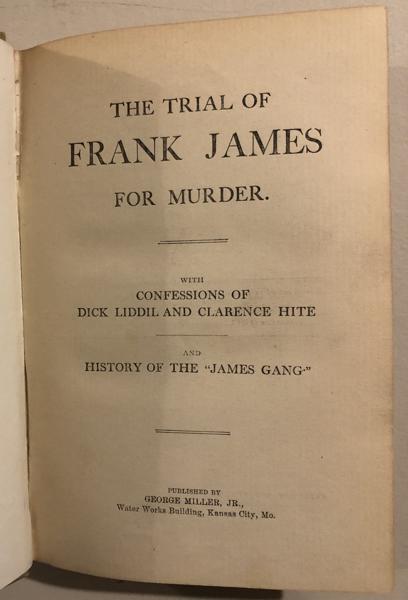 First Edition. 8vo. Original Tan Printed Cloth. [4], 348 pp., Preface by the editor. Illustrated with several Plates. Written by George W. Miller, Jr., the nephew of William Wallace, the prosecutor in the case. Six Guns 1488 says "The complete record of the trial, with testimony, addresses to the jury, and the pleas of the attorneys." Some very light general soiling and some cracking to inside front hinge. Very good.