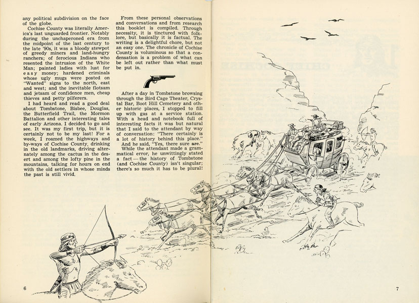First edition. 8vo. Color pictorial wrappers, 58 (2) pp., introduction, illustrated from photographs and drawings, portraits, map. Six Guns says, "Has much material on the outlaws of Arizona. The author tells of the hanging of John Heath, the O K Corral fight, and other explosive events in Arizona." Very good copy.