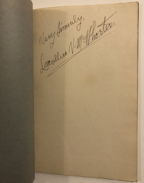 First Edition. Printed Wrappers. [45pp.]. Frontispiece. Illustrations. 2-page folding Map. Introduction by H. D. Guie. The first telling of the killing of Major Andrew J. Bolon, agent to the tribes of central and eastern Washington Territory. Agent Bolon was killed by a group of supposedly friendly Yakimas; a deed that precipitated the Yakima war of 1855-56 and was the beginning of general Indian hostilities throughout a great part of Washington and Oregon territories. The few Indians who participated in the killing never talked about it, until Su-el-lil, better known as Yakima George, aged Klikitat medicine man and the last survivor of the affair, told his friend, Lucullus V. McWhorter the details of the killing. This very scarce work precedes McWhorter's better-known works about the Nez Perce and the Nez Perce war. Some wear along the spine and some light soiling. A very good copy. Signed by McWhorter on front free-endpaper. At the time of publication, L. V. McWhorter was Curator Washington State Historical Society, Life Member Wisconsin Historical Society, and Charter Member American Military History Foundation.