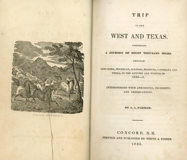 A travel narrative recounting Parker’s journey from New England to the western United States, including his observations of Texas. Parker, a well-educated New Englander, describes landscapes, people, and early settlements he encountered during his travels. His account offers a glimpse into the conditions and prospects of the frontier during the early 1830’s, highlighting the challenges of westward expansion, the economic potential of Texas, and the diverse cultures and environments that settlers encountered. The work also reflects Parker’s perspective on the social and political developments of the time, particularly in relation to the allure of Texas for American settlers. Through his detailed observations, Parker provides readers with a firsthand view of the West during a period of growing interest and migration to the region. Raines says "One of the earliest descriptions of Texas in English, by an observing and friendly traveler."