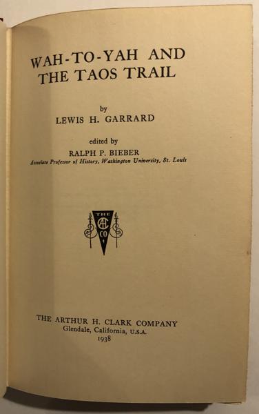 First edition. Cloth, teg, 377pp., frontis [port], preface, editor's introduction, Garrard's introduction, untrimmed, illustrated, map. Vol VI of The Southwest Historical Series. Edited by Ralph P. Bieber, Associate Professor of History, Washington University, St. Louis. From Wagner-Camp: "Garrard left Westport on September 12, 1846 in a Santa Fe wagon trail led by Col. Ceran St. Vrain and returned to Saint Louis in the summer of 1847. His account describes the Taos massacre, and the subsequent trials of the prisoners. In the course of his travels, Garrard met several well-known figures of the last days of the fur trade including Jim Beckwourth, Kit Carson, and George Ruxton." A fine, bright copy. From the library of noted author and bibliographer, Francis P. Farquahar.