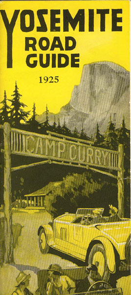 18" x 24" folded to 24 panels, each 9" x 4." Information on Yosemite National Park, the resorts and campgrounds along with rates, motor and camping regulations, ferry schedules, as well as various scenic routes through and to Yosemite. Several black and white photographs of the area, rooms in the resorts, as well as a nice illustration of a man and woman horseback riding in the area. 12 panels depict a large road guide map of Yosemite. Inset are three small maps; one a California Highway map, one a map of Roads, Resorts, and Hikers' Camps, and a map of the Yosemite Valley, along with information on hikers' camps and saddle trips. Splitting to some panels along with minor rubbing to cover folds and with a name and street written neatly in green ink to top of one of the panels. Very good and nicely produced.